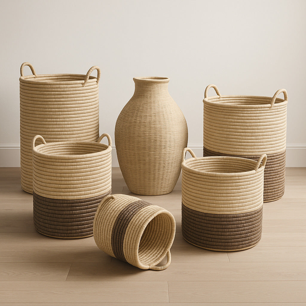 A refined blend of traditional Malawian weaving and minimalist modern design. This elegant collection features handwoven baskets in warm neutrals with soft color gradients ideal for storage or statement decor. Natural texture, timeless form, and artisan spirit come together in perfect balance.